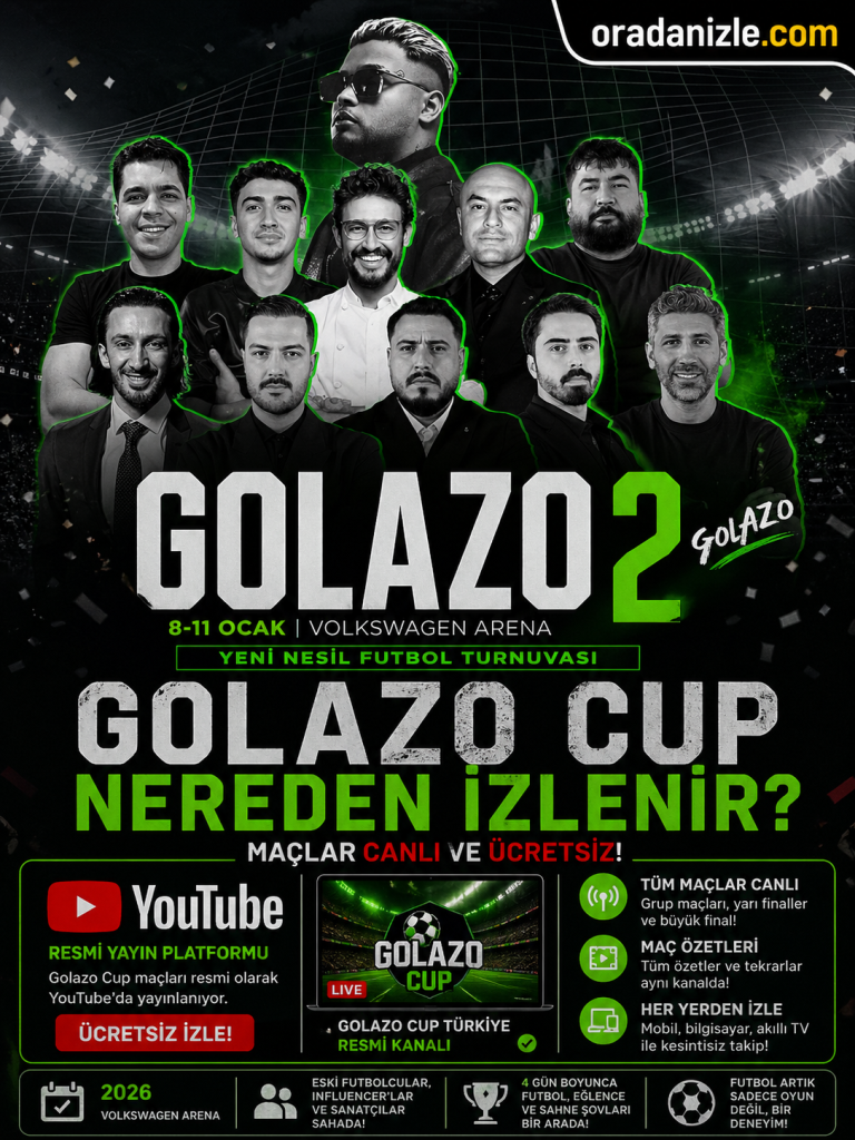 Golazo Cup, YouTube üzerinden canlı ve ücretsiz şekilde izlenebilen bir futbol organizasyonu olarak öne çıkıyor. Tüm maçlar resmi kanal üzerinden yayınlanıyor. Turnuva, spor ile eğlenceyi aynı sahada buluşturuyor.